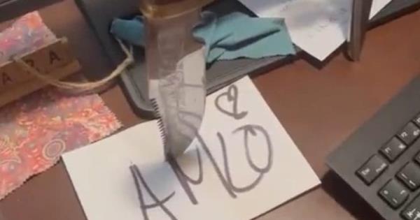 "Lo peor es que vean ustedes lo que me dejan, un cuchillo y abajo los signos del señor mandante putrefacto", contó.
