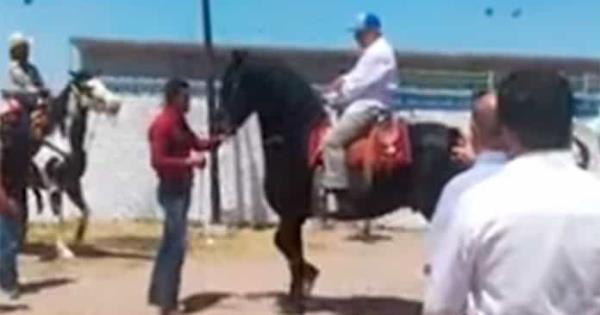 Después de un evento en Escenario Cultural "Somos Camargo, Cuna de Artistas', el mandatario aceptó montar al caballo y demostró que tiene poca destreza como jinete.