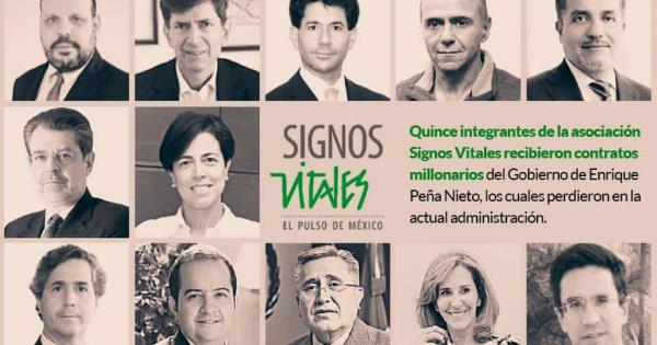 Y sí: Los integrantes de Signos Vitales, que “actúan de manera individual y no a nombre de alguna institución”, están vinculados a empresas, instituciones y organizaciones de la sociedad civil que sólo en el Gobierno de Peña Nieto obtuvieron jugosos contratos que ya no tienen en el de López Obrador.