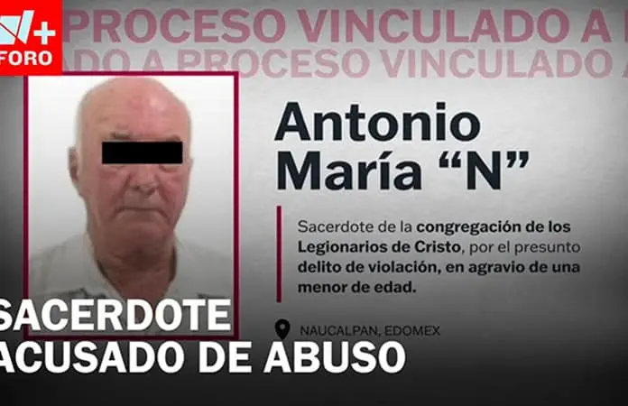 CIUDAD DE MÉXICO.- Un juez de Control del Estado de México vinculó a proceso y ratificó la prisión preventiva oficiosa al sacerdote católico Antonio María Cabrera Cabrera, integrante de los Legionarios de Cristo, por su presunta responsabilidad en tres delitos de violación contra un menor de edad, entre 2004 y 2011.