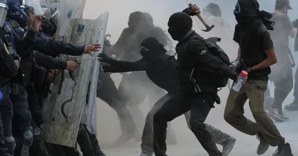 La violencia registrada el jueves al final de una marcha multitudinaria dejó más de un centenar de heridos, entre policías y civiles, en el centro de la Ciudad de México, en la conmemoración del 57º aniversario de la matanza de un grupo de estudiantes en la plaza de Tlatelolco.