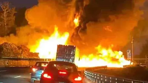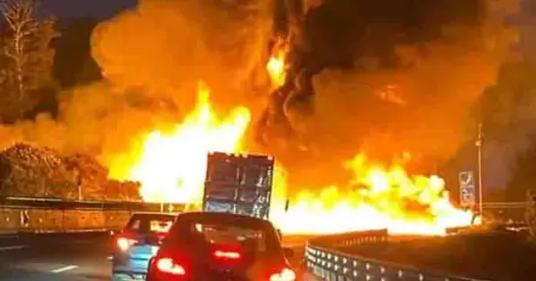 El accidente ocurrió alrededor de las 19:00 horas cuando el chofer de la pipa que transportaba combustible circulaba por la vía de cuota, a la altura del municipio de Ixtapaluca.