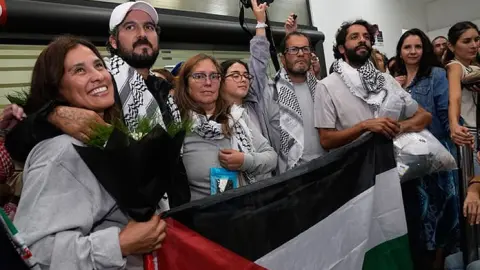 “Nunca rompieron nuestro espíritu, nunca tuvimos miedo y aquí está el ejemplo de estos compañeros que nunca perdieron el buen humor, nunca perdieron la causa, la misión y seguimos hablando de Gaza”, subrayó Carlos Pérez Osorio.