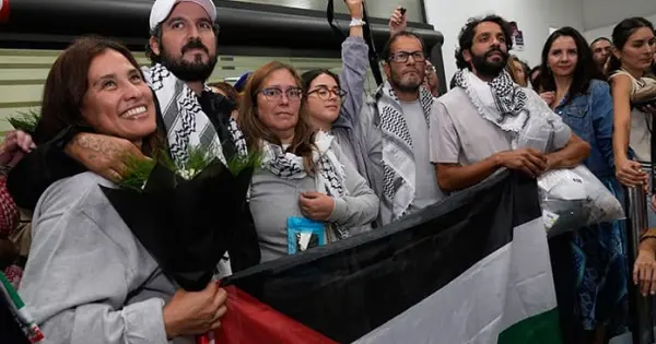 Ciudad de México.- Los seis activistas mexicanos de la Flotilla Global Sumud aterrizaron este miércoles en el Aeropuerto Internacional Benito Juárez de la Ciudad de México en un vuelo procedente de Turquía, y denunciaron maltrato y “torturas” tras ser arrestados por el ejército israelí el pasado 1 de octubre cuando intentaban llevar ayuda humanitaria a la Franja de Gaza.