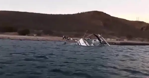 La nave, que había salido de los muelles del centro turístico para realizar pruebas de maquinaria, transportaba a cinco personas y navegaba cerca de Punta Doble cuando el viento fuerte y la lluvia complicaron la travesía.