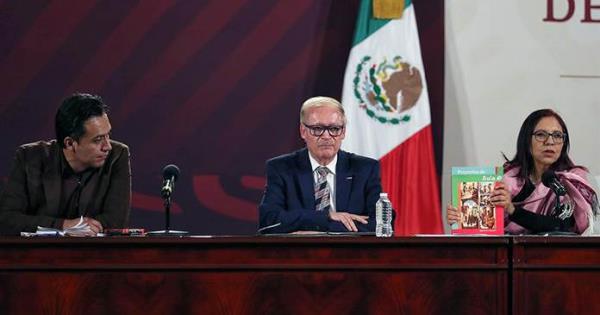 En la conferencia estuvieron presentes la titular de la SEP, Leticia Ramírez; el director de Materiales Educativos, Marx Arriaga Navarro; y el investigador emérito del Instituto de Investigaciones sobre la Universidad y la Educación de la UNAM, Ángel Díaz Barriga.