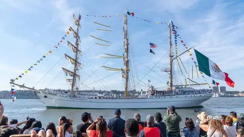 La Secretaría de Marina de México dijo en un comunicado que con el viento a su favor el ‘Caballero de los mares’, como se le conoce al buque, regresa a su misión de llevar “un mensaje de paz y buena voluntad”.