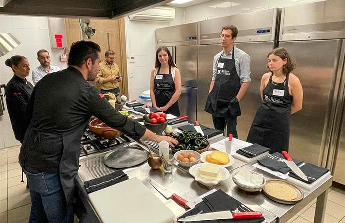 Eduardo Pérez, director de asuntos empresariales de la Casa de México, explica a los participantes que este curso no es solo una clase de una receta específica sino "la forma de mostrar la riqueza culinaria de todo México".