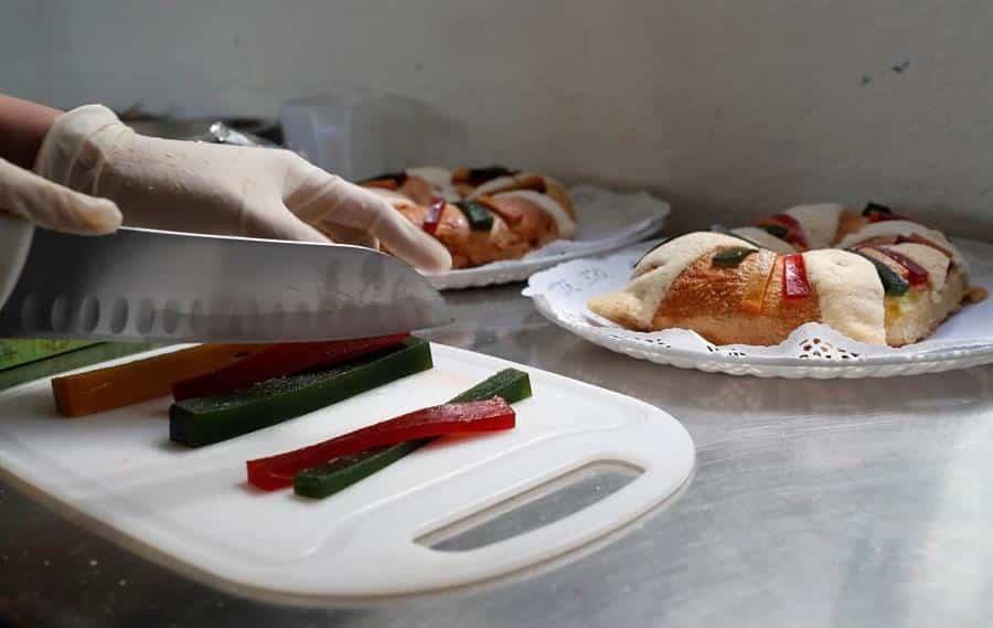 De igual manera, la rosca de reyes es un pastel redondo y dulce que se hornea con pasas, nueces y frutas confitadas.