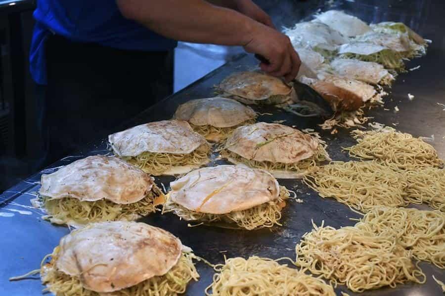 Este clásico culinario típico no sólo de Hiroshima, sino también de Osaka y Tokio, deriva de las palabras "okonomi" (lo que quieras) y "yaki" (a la plancha), con ingredientes que varían desde el cerdo o marisco a una versión más simple con sólo masa y fideos.