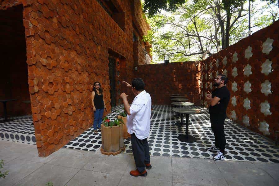 “Este lugar era pequeño y lo que teníamos que hacer era darle una fuerza muy grande arquitectónicamente y nuestra materia principal fue el ladrillo, tratamos de jugar con diferentes formas hasta que encontramos la perfecta, que fue el hexágono”, expresó.