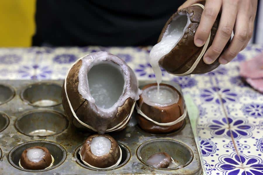 Una vez lista, se vierte en moldes de barro que previamente fueron sumergidos en agua para lograr un enfriado perfecto del producto y se puedan desmoldar.
