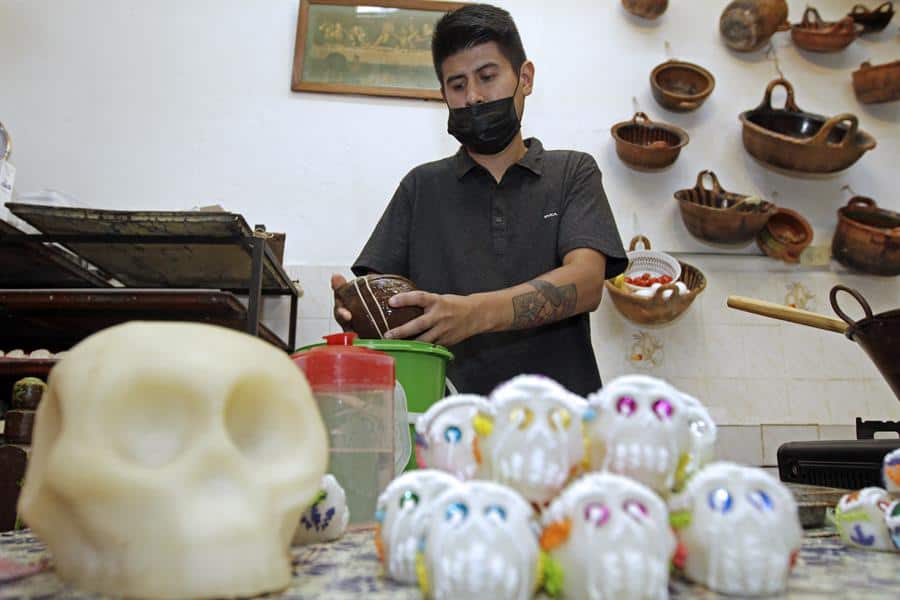 Reveló que anualmente llegan a fabricar unas 25.000 calaveritas, las cuales en su mayoría son exportadas a España y Alemania, por lo que comienzan su elaboración desde junio para poder cumplir con los pedidos.