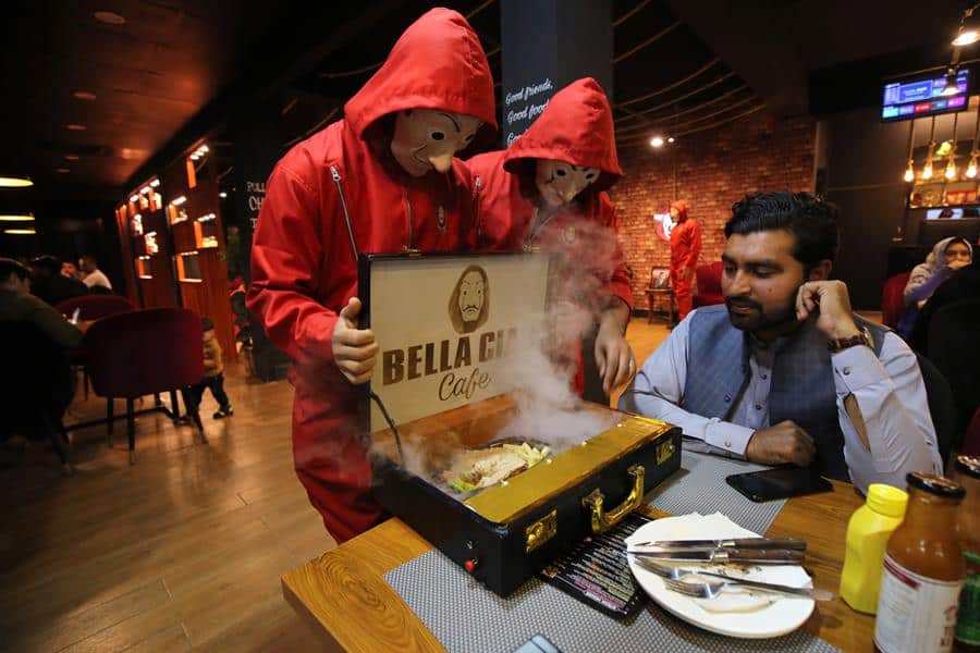 Samiullah Khattak, el propietario de este café, afirmó a EFE que tanto él como sus familiares son fanáticos de la serie de Netflix y se sintieron inspirados hasta el punto de basar su café en ella y nombrar los platos en honor a los personajes, como la hamburguesa Profesor o el filete Nairobi.
