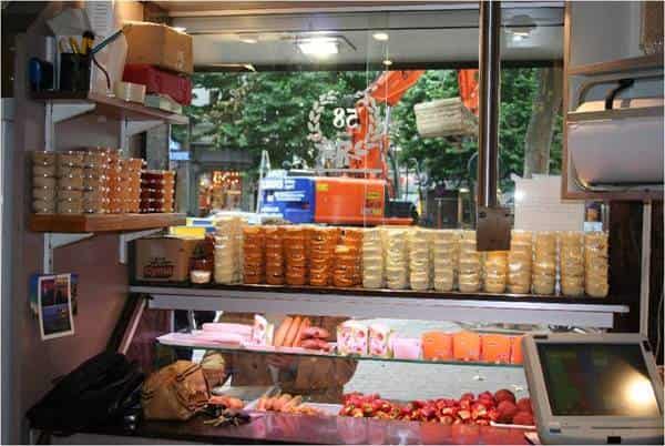 Antes de que el servicio las arranque, una decena de personas guarda cola para deleitarse con la especialidad de la casa, que suele ir acompañada por una de las 29 salsas que ofrece. La “andalouse” fue la elegida por Merkel.
