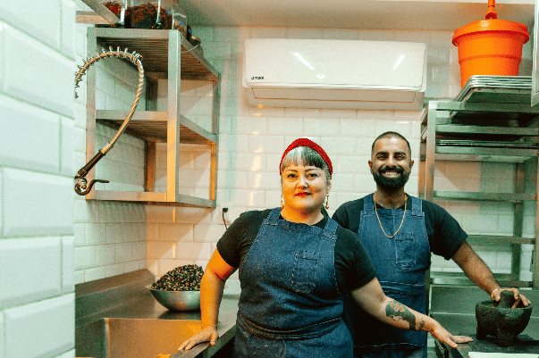 Para Norma Listman y Saqib Keval, chefs del lugar, la comida de Masala y Maíz está inspirada en sus tierras, pero más importante, en sus abuelas. Norma creció con una abuela mexicana y Saqib con una abuela hindú, lo cual ha enriquecido su cocina. De la unión de estas dos culturas es como nacen los platillos de esta gran propuesta culinaria.