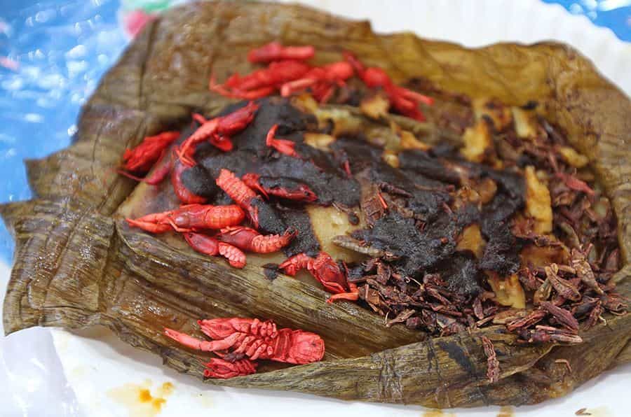Este tamal proviene de la zona de Tabasco. Está conformado por masa de maíz martajada, carne de res, cerdo o incluso pejelagarto, así como cilantro, chile amaxito, perejil, frijol pelón, entre otros ingredientes y se envuelve en hoja de plátano para cocinarse a vapor.