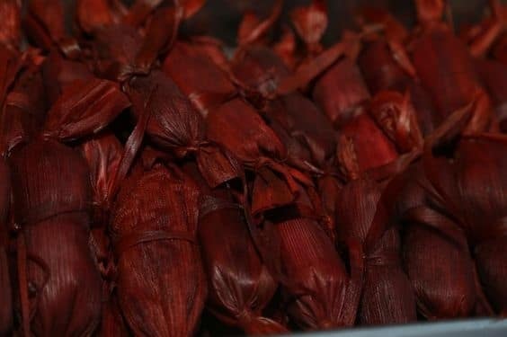 Su peculiaridad proviene de la cocción, ya que cuando se colocan dentro de la vaporera, se añaden ramas de palo de Brasil, lo que impregna su aroma a cada tamal.