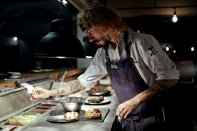La fusión con la leña como base es también la clave de Fayer (fuego en yiddish), un local que mezcla la parrilla argentina con la cocina judía. Hasta la comida chatarra se ha visto influida por esta tendencia. En Kon Kon, un gran mural con la imagen de un leñador barbudo recibe a los clientes que buscan shawarmas cocinados en las brasas en lugar de en el asador tradicional.