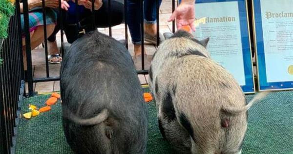Al parecer Peppa y Petra tienen más carne que sus antecesoras, según resaltó con buen ojo el alcalde antes de mostrar los documentos enmarcados que las libra de acabar asadas.