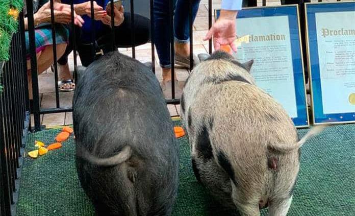 La idea del perdón porcino se les ocurrió a los propietarios de Latin Café, una cadena de restaurantes cubanos capitaneados por Katherine y Eric Castellanos, presentes en la ceremonia de hoy.
