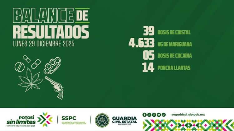 Detienen a 33 personas en 24 horas durante operativos en SLP