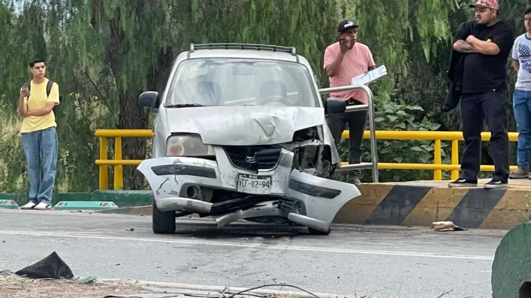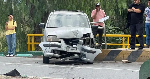 Una joven conductora resultó lesionada al impactarse en su automóvil con la base de concreto de un poste de la CFE en carretera Zacatecas, frente a la colonia San Ángel.