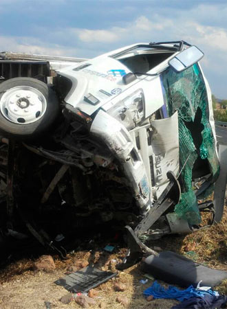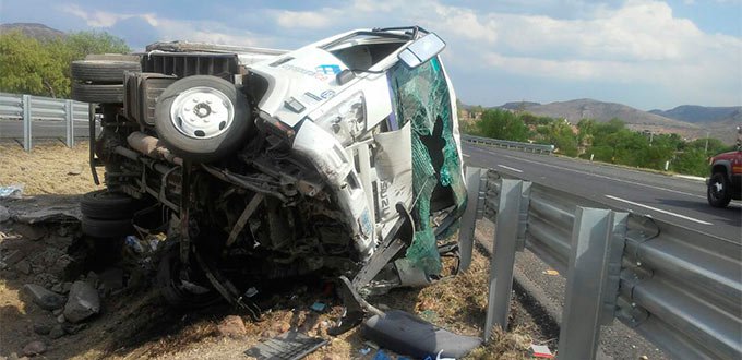 De acuerdo con el reporte, el accidente fue en el kilómetro 162 de la vía federal a la altura de Ojo Caliente, donde el chofer de la empresa perdió el control de la unidad, salió del camino y volcó, quedando sobre la cuneta que divide los carriles centrales.