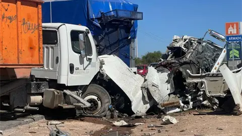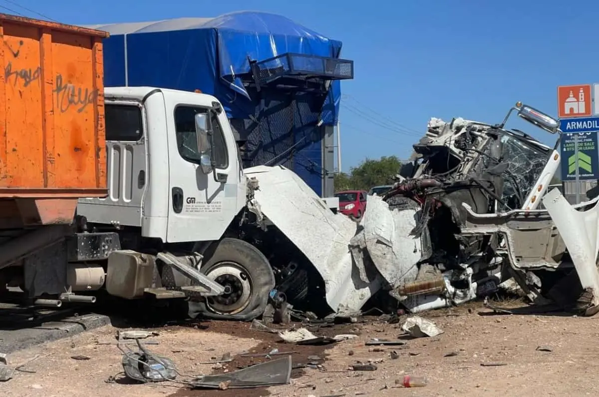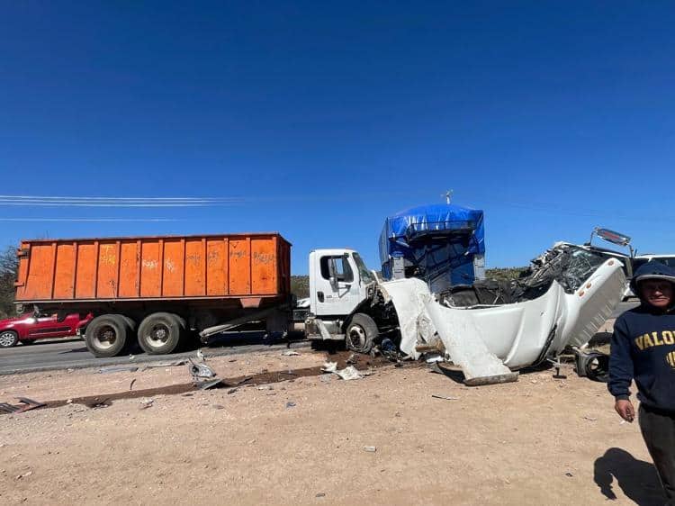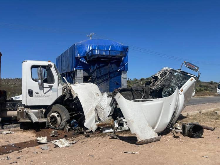 El reporte fue cerca de las 14:00 horas de este jueves, cuando el chofer de un camión circulaba sobre carretera a Rioverde, pero justo cuando bajaba del puente de Ciudad Satélite con dirección a San Luis Potosí, perdió el control hacia su izquierda e impactó de frente a otro torton.