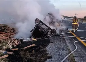 Transportaba madera por la carretera ´57, en el tramo Matehuala-El Huizache