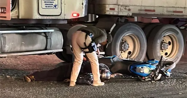 Un motociclista resulta lesionado al impactar con tráiler en Avenida Industrias y el Eje 116 en la Zona Industrial. Los hechos se suscitaron antes de las 23:00 horas del día miércoles.