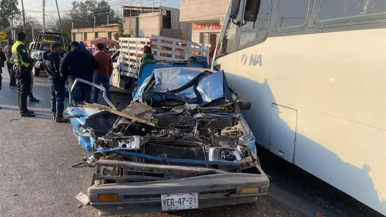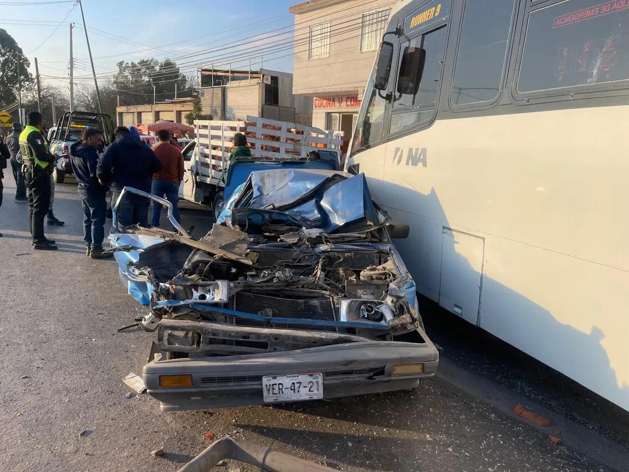 Tras el primer choque, el Tsuru fue proyectado contra una camioneta Nissan blanca, la cual a su vez colisionó con otro camión de transporte de personal, generando una carambola entre cuatro vehículos.
