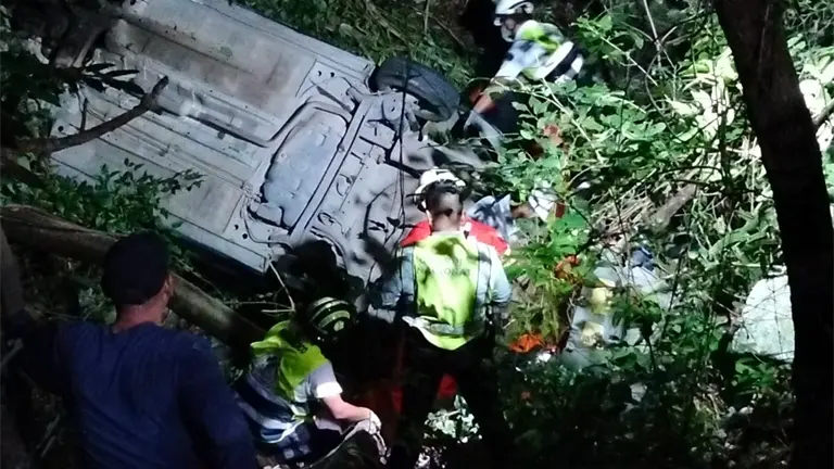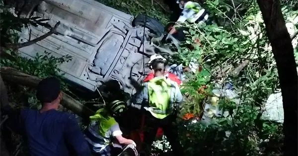La unidad volcó hacia un barranco y quedó con las llantas hacia arriba, por lo que los cuatro tripulantes resultaron lesionados.