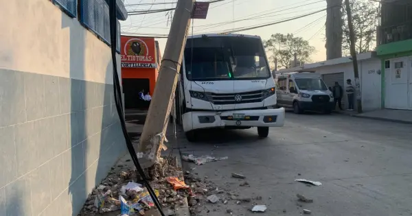 El accidente se registró después de las 06:00 de la mañana de hoy miércoles, cuando el chofer de la unidad circulaba sobre la calle Constitución de 1857 y 21 de marzo, pero pierde el control hacia su derecha impactando con el poste de concreto.