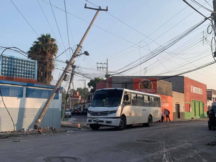 Tres personas resultan heridas tras choque de camión en la colonia Benito Juárez. La CFE trabaja en reparar los daños ocasionados.