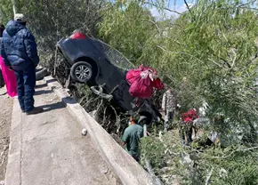Un automóvil perdió el control y cayó a un desnivel en Circuito Potosí, sin causar lesiones graves.
