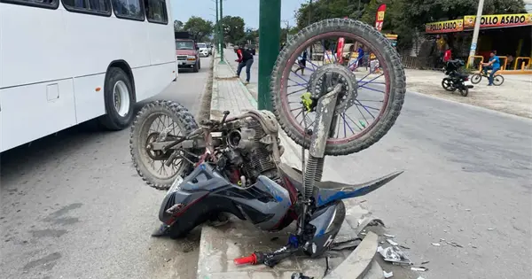 Tras el choque, el joven salió proyectado varios metros, mientras que la motocicleta terminó sobre el camellón central, con las llantas hacia arriba. Debido a la gravedad de las lesiones, fue trasladado al Hospital General, ya que presentaba probable fractura en la pierna izquierda.