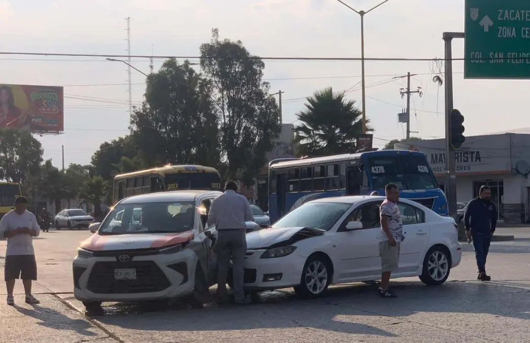 La tarde de este miércoles se registró un accidente vial en el cruce de avenida Acceso Norte y calle Arenal, en la colonia Avaltrán, en Soledad de Graciano Sánchez. El reporte se generó alrededor de las 17:30 horas.