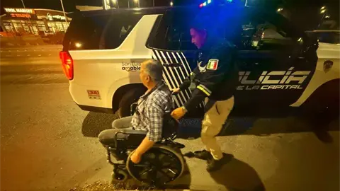 Un adulto mayor en silla de ruedas fue auxiliado por elementos de la Policía Vial luego de ser localizado en la colonia Villa Magna, donde señaló que no encontraba transporte para trasladarse.