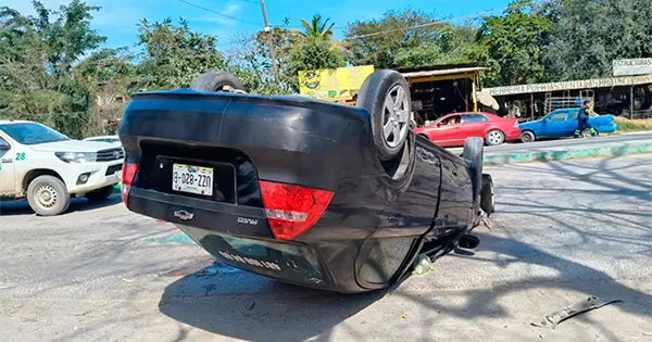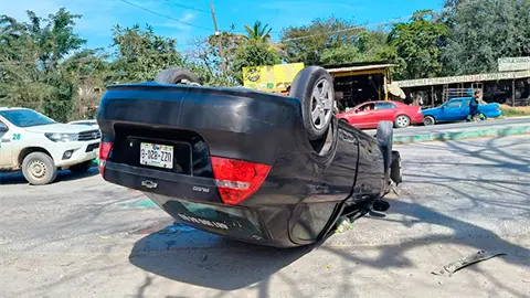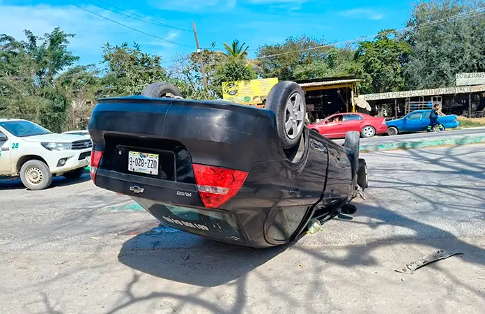 Pero presuntamente, a causa de la velocidad y la falta de precaución, chocó por alcance contra una camioneta SUV marca Hyundai; posteriormente su vehículo volcó, quedando con las llantas hacia arriba.