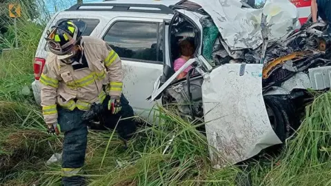 Por el fuerte impacto, el automóvil donde iban los adultos mayores, quedó destrozado por completo y ellos acabaron prensados en el interior, por lo que al lugar acudieron paramédicos de Protección Civil Municipal, del Cuerpo de Bomberos de Ciudad Fernández y de Rioverde, a bordo de la unidad M2.