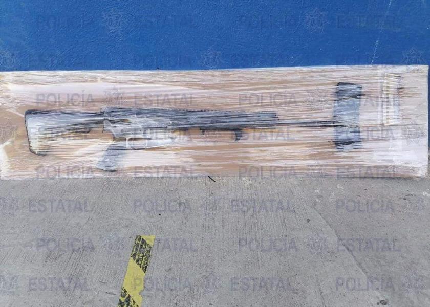 En la cabina de la camioneta se encontró un fusil de asalto calibre .223 con un cargador, cuatro chalecos tácticos cada uno con su placa balística, un casco balístico, un radio portátil, seis ponchallantas, 105 bolsas de plástico con marihuana para un total de 525 gramos y ropa táctica diversa.