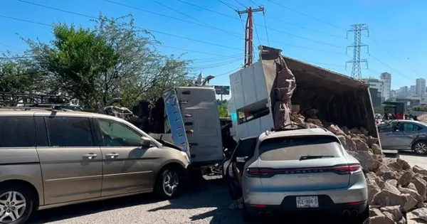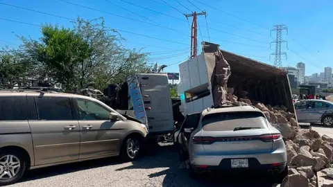 Los vehículos afectados en la volcadura fueron un Honda, un Porsche, dos Honda, una camioneta Toyota, dos autos KIA, un Óptima y un Dodge, en entre otros, los cuales se encontraban estacionados en línea sobre la lateral del bulevar, arteria también conocida como avenida Sierra Vista.