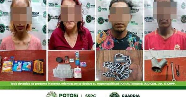 Uno de los hechos se suscitó en el Barrio de Santiago en la capital potosina; los oficiales estatales detuvieron a Joanna de 22 años de edad después de que personal de un supermercado indicara que la mujer trató de huir del lugar con varios productos. De igual manera, oficiales estatales se trasladaron hacia la colonia Ricardo B. Anaya en la calle Ángeles Martínez, donde Eduardo de 40 años de edad fue detenido tras la denuncia de los responsables de un supermercado, al indicar que el hombre trató de hurtar una toma de agua; al momento de su detención se le aseguró herramienta diversa.