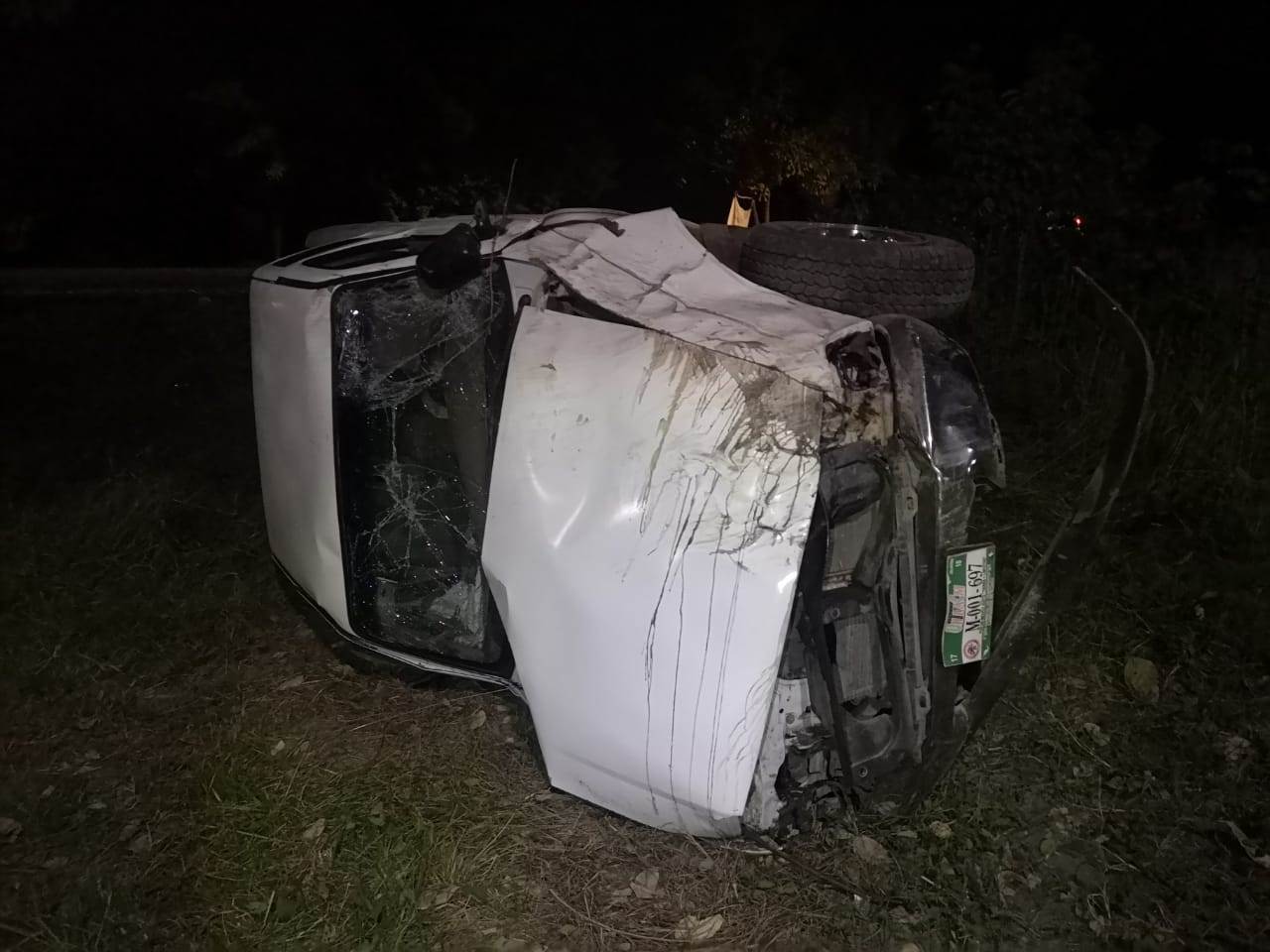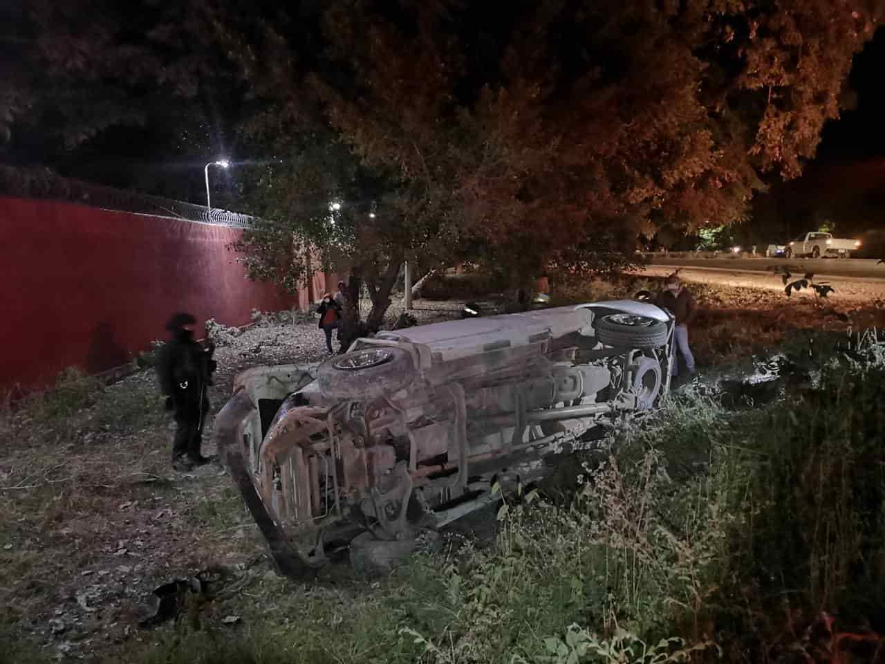 La noche del viernes vecinos del ejido Montecillos reportaron al Sistema de Emergencias 911, que se había volcado una camioneta frente a la granja de pollos de ese sector, y que había personas prensadas.