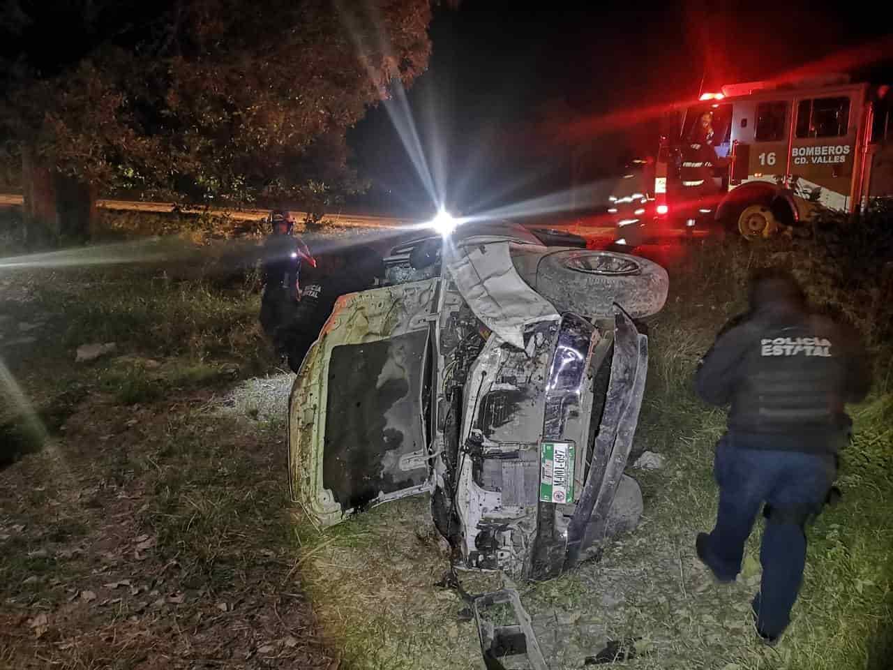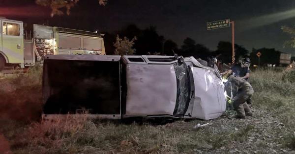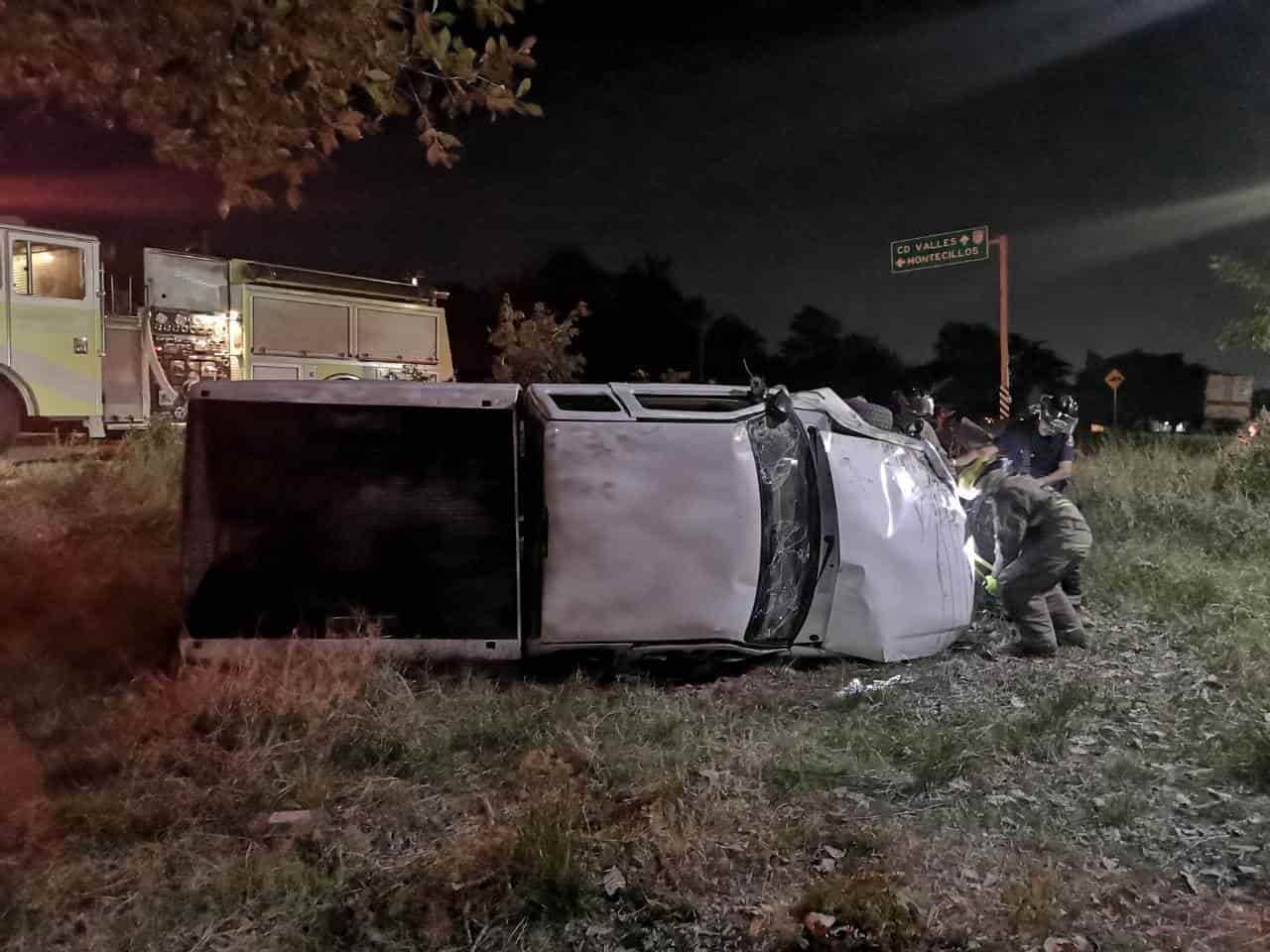 Aparatosa volcadura de camioneta en Valles