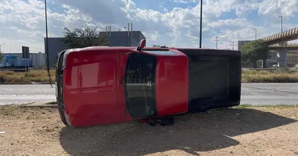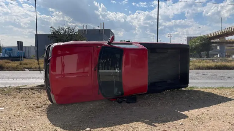 El reporte a las 12:30 horas de este sábado, cuando el conductor de una camioneta Ford Ranger circulaba sobre la lateral de la carretera 57, con dirección al Distribuidor Juárez, pero al pasar la Avenida Seminario pierde el control hacia su derecha y choca con la guarnición, dio un medio giro y quedó volcada sobre su lado izquierdo.