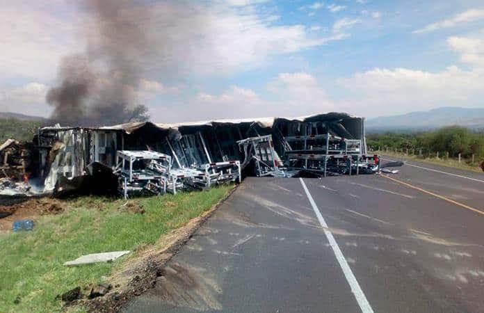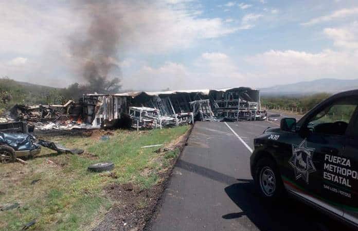 Los hechos ocurrieron alrededor de las 11 de la mañana en el kilómetro 47 de la mencionada carretera, en los carriles que van de San Luis Potosí a Villa de Arriaga, a la altura de Villa de Reyes.
