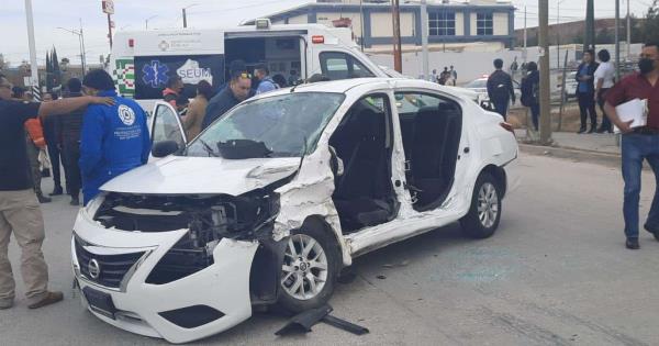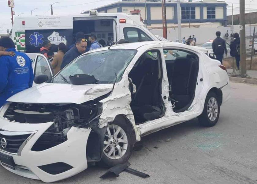 Los hechos se suscitaron esta tarde en el cruce de avenida Mariano Jiménez y Urbano Villalón, en la colonia Balcones del Valle , donde el conductor del Nissan Versa que circulaba sobre Mariano Jiménez , al incorporarse a la avenida Urbano Villalón fue impactado por un camión de trasporte de de escolares de la secundaria Potosinos Ilustres.