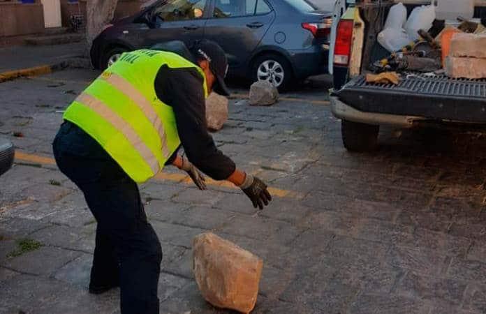 En el operativo “barredora”, llevado a cabo por elementos de Seguridad Pública Municipal en calles de la zona centro y zonas aledañas se retiraron más de 100 objetos, que servían para “apartar” lugares.